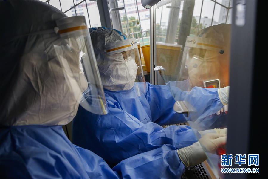 7月3日,中日友好醫(yī)院檢驗科新冠核酸檢測實驗室的檢驗人員閆克芹(右)和張鑫在實驗室內處理剛剛送到的樣本。新華社記者張玉薇攝