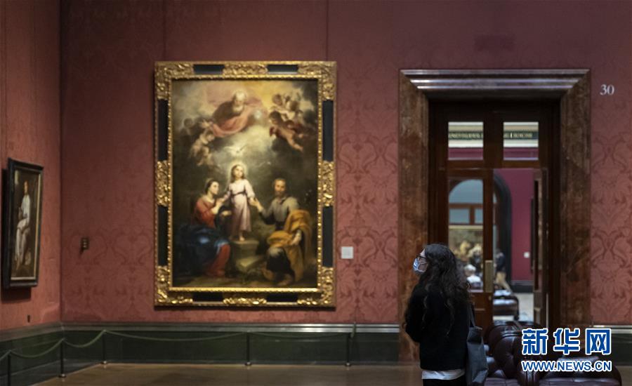 7月4日,參觀者佩戴口罩在英國(guó)國(guó)家美術(shù)館的媒體開放日上參觀。受新冠疫情影響而關(guān)閉的英國(guó)國(guó)家美術(shù)館將于7月8日重新對(duì)公眾開放,成為倫敦首批開門迎客的博物館、美術(shù)館。參觀者需提前網(wǎng)上預(yù)約參觀時(shí)段,全程佩戴口罩且保持安全距離。新華社記者韓巖攝