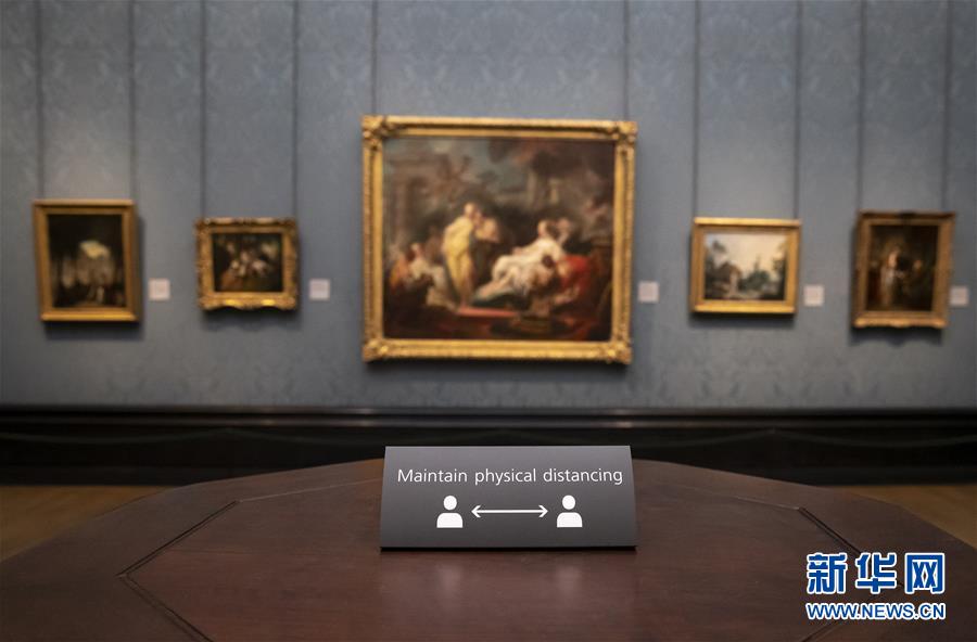7月4日,參觀者佩戴口罩在英國(guó)國(guó)家美術(shù)館的媒體開放日上參觀。新華社記者韓巖攝