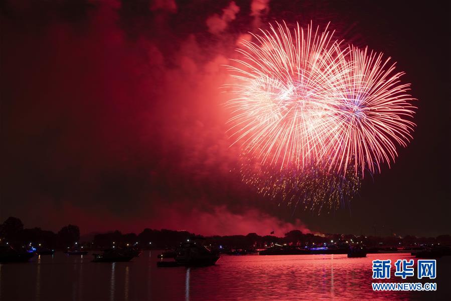 7月4日,焰火在美國華盛頓上空綻放,慶祝美國獨立日。當日是美國獨立日,美國多地疫情仍面臨嚴峻形勢。美國約翰斯·霍普金斯大學實時統(tǒng)計數據顯示,美國累計新冠確診病例4日已超過280萬例。新華社記者劉杰攝