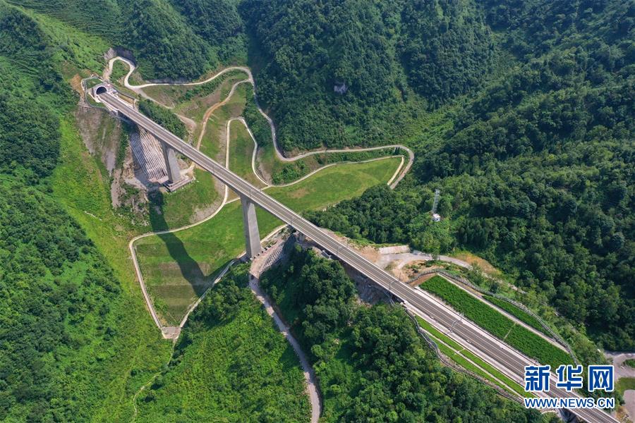 7月6日拍攝的安六鐵路彭家沖一號大橋(無人機照片)。當日,新建貴州安六鐵路(安順至六盤水)聯(lián)調(diào)聯(lián)試工作進入收尾階段,開通前的各項準備工作已基本就緒。安六鐵路線路全長約125公里,設(shè)計時速250公里,為國家I級雙線客運專線。建成投用后,貴陽至六盤水的鐵路旅行時間可從現(xiàn)在的3.5小時縮短為1小時左右,貴州省六盤水市將全面接入全國高鐵網(wǎng)。新華社記者劉續(xù)攝