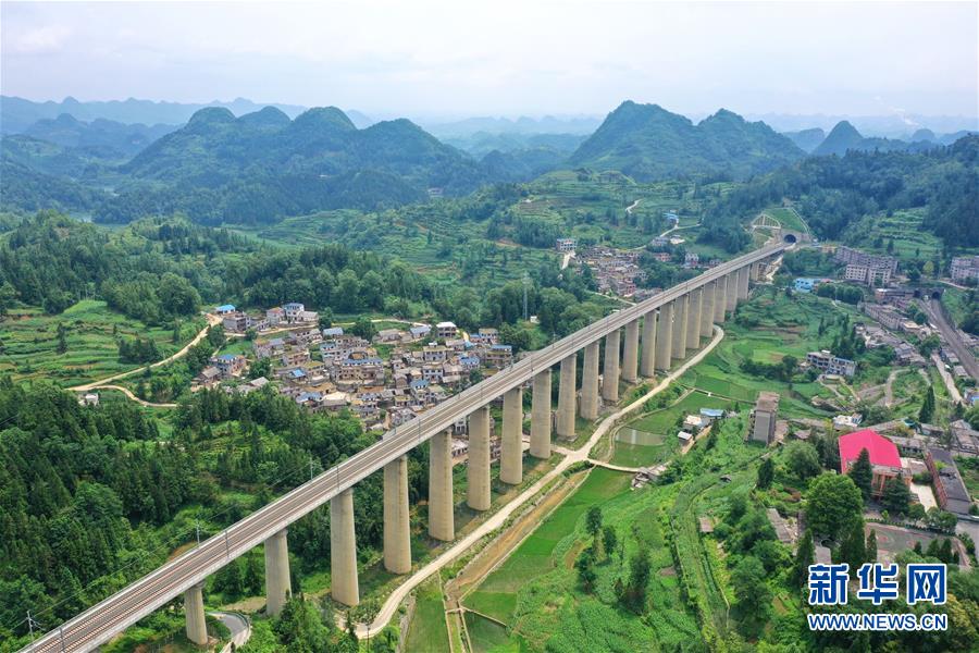 7月6日拍攝的安六鐵路岱港村特大橋(無(wú)人機(jī)照片)。當(dāng)日,新建貴州安六鐵路(安順至六盤(pán)水)聯(lián)調(diào)聯(lián)試工作進(jìn)入收尾階段,開(kāi)通前的各項(xiàng)準(zhǔn)備工作已基本就緒。安六鐵路線(xiàn)路全長(zhǎng)約125公里,設(shè)計(jì)時(shí)速250公里,為國(guó)家I級(jí)雙線(xiàn)客運(yùn)專(zhuān)線(xiàn)。建成投用后,貴陽(yáng)至六盤(pán)水的鐵路旅行時(shí)間可從現(xiàn)在的3.5小時(shí)縮短為1小時(shí)左右,貴州省六盤(pán)水市將全面接入全國(guó)高鐵網(wǎng)。新華社記者劉續(xù)攝