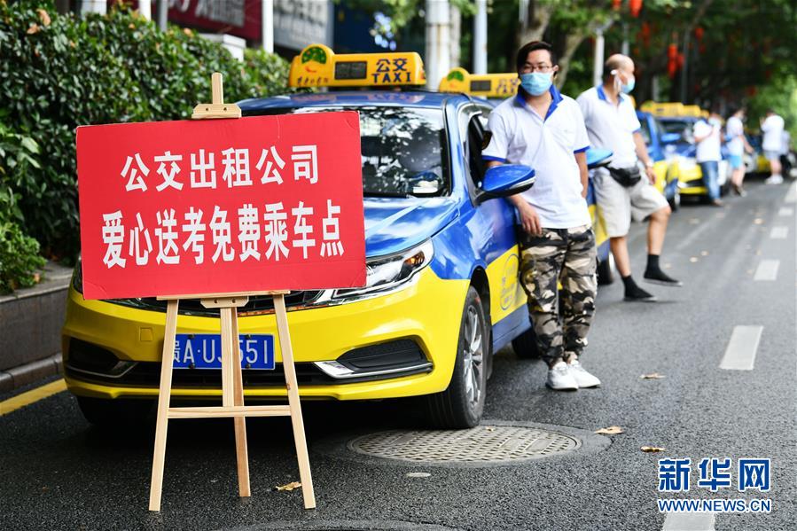 7月7日,在貴州省貴陽市第六中學(xué)考點外,愛心送考出租車司機在等候考生結(jié)束考試后免費乘車。當(dāng)日,2020年高考拉開帷幕。新華社記者楊文斌攝