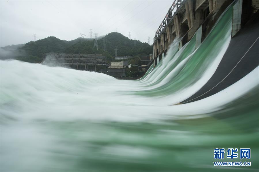 7月7日下午開啟7孔泄洪的新安江水庫(手機(jī)全景模式拍攝)。受持續(xù)降水影響,浙江新安江水庫水位持續(xù)快速上升。繼當(dāng)日10時(shí)開啟3孔、12時(shí)開啟5孔泄洪后,新安江水庫于16時(shí)增加到7孔泄洪。新安江水庫是華東地區(qū)最大的水庫,在錢塘江流域的防洪度汛中起到關(guān)鍵作用。新華社記者翁忻旸攝
