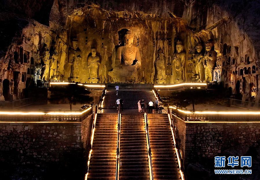 7月7日拍攝的洛陽(yáng)龍門石窟景區(qū)夜景(無(wú)人機(jī)照片)。近日,河南洛陽(yáng)的夜晚愈發(fā)繽紛多彩。立足于厚重的隋唐文化底蘊(yùn),洛陽(yáng)正通過(guò)創(chuàng)新夜游產(chǎn)品打響“古都夜八點(diǎn)”品牌,激活文旅消費(fèi)。新華社記者李安攝