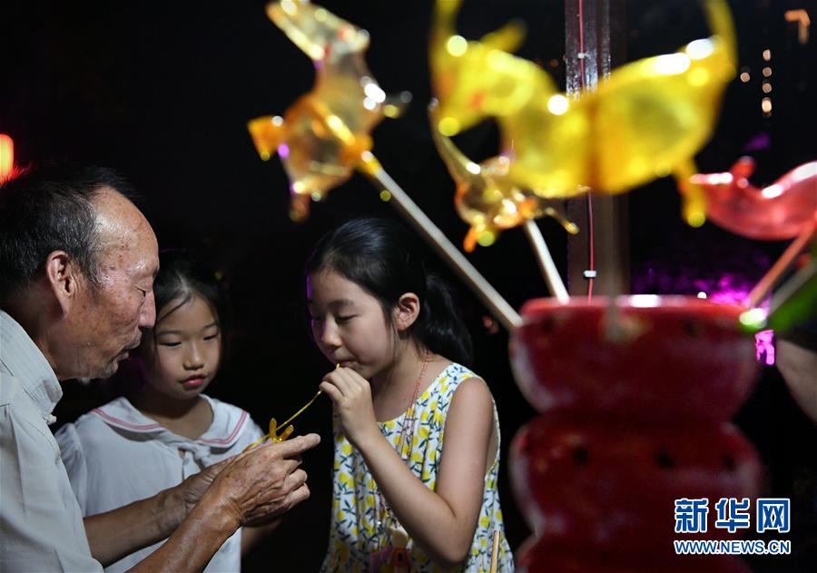7月7日晚,小朋友在洛陽(yáng)洛邑古城內(nèi)吹糖人。近日,河南洛陽(yáng)的夜晚愈發(fā)繽紛多彩。立足于厚重的隋唐文化底蘊(yùn),洛陽(yáng)正通過(guò)創(chuàng)新夜游產(chǎn)品打響“古都夜八點(diǎn)”品牌,激活文旅消費(fèi)。新華社記者李安攝