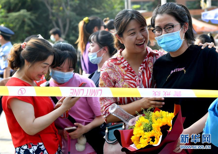 7月8日,在吉林省長春市第八中學(xué)考點(diǎn)門口,考生慶祝高考結(jié)束。當(dāng)日,全國部分地區(qū)2020年高考結(jié)束。新華社發(fā)(顏麟蘊(yùn)攝)