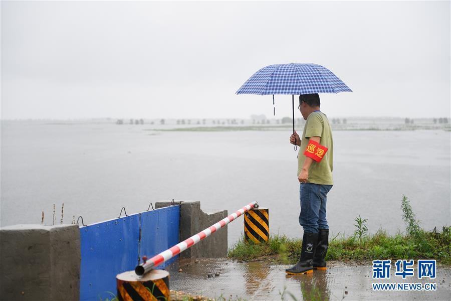 工作人員在益陽(yáng)市大通湖區(qū)東大堤巡查(7月8日攝)。新華社記者陳澤國(guó)攝