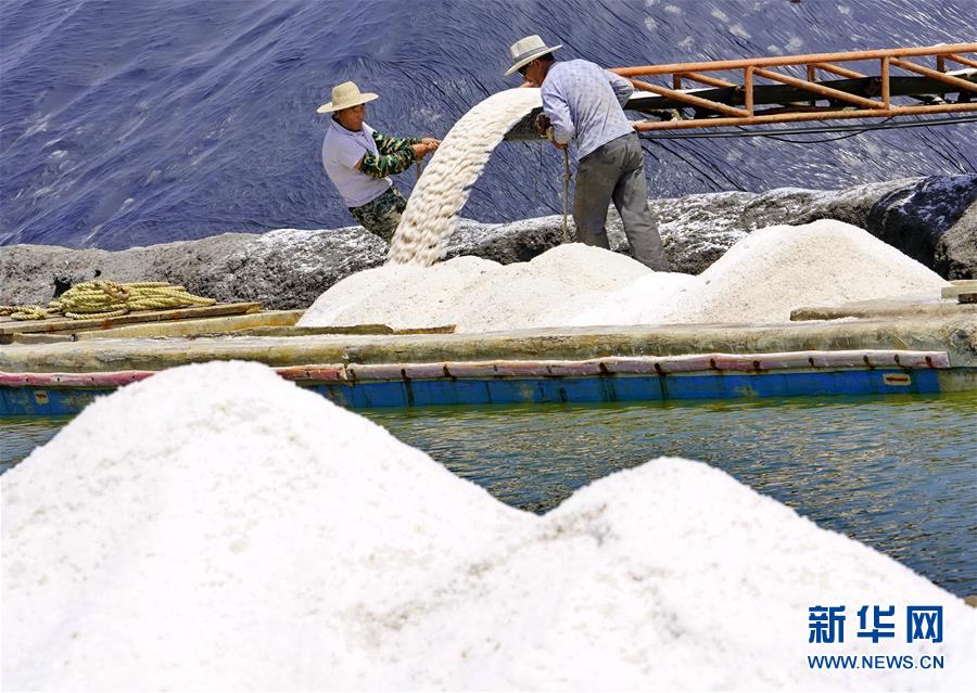 7月9日,唐山市曹妃甸區(qū)南堡鹽場的工人將收獲的春鹽裝船。在我國長蘆鹽區(qū)海鹽生產(chǎn)基地之一的河北省唐山市曹妃甸區(qū)南堡鹽場,一年一度的春鹽收獲工作即將結(jié)束,今年南堡鹽場的春鹽產(chǎn)量預(yù)計(jì)可達(dá)72萬噸。新華社記者楊世堯攝