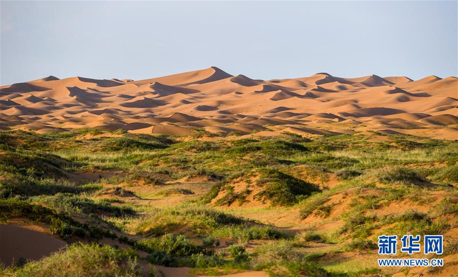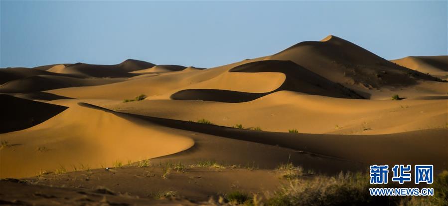 這是7月8日拍攝的騰格里沙漠風(fēng)光。位于內(nèi)蒙古自治區(qū)阿拉善左旗西南部和甘肅省中部邊境的騰格里沙漠是我國(guó)第四大沙漠,總面積約為4.3萬(wàn)平方公里。夏日傍晚,騰格里沙漠連綿的沙丘被日光勾勒出美麗的線條,美不勝收。新華社記者連振攝