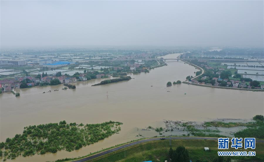 7月9日拍攝的水陽江南京高淳段(無人機(jī)照片)。入梅以來,江蘇省南京市高淳區(qū)多次遭受強(qiáng)降雨,加上上游來水量大,截至7月9日8時(shí),高淳境內(nèi)水陽江水碧橋水位達(dá)到13.01米,超警戒水位2.51米。7月7日水陽江區(qū)域已啟動(dòng)防汛應(yīng)急Ⅰ級(jí)響應(yīng)。高淳區(qū)在水陽江區(qū)域堤防沿線設(shè)立241個(gè)防汛值守點(diǎn),實(shí)施24小時(shí)值班值守。新華社記者季春鵬攝