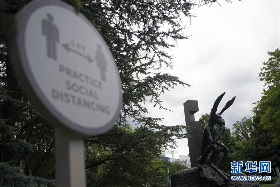 7月11日,在美國華盛頓的國家藝術畫廊雕塑公園,一座雕塑旁立著保持社交距離的提示牌。美國約翰斯·霍普金斯大學11日發(fā)布的新冠疫情最新統(tǒng)計數(shù)據(jù)顯示,截至美國東部時間11日18時34分(北京時間12日6時34分),美國累計確診病例3242073例。新華社記者劉杰攝
