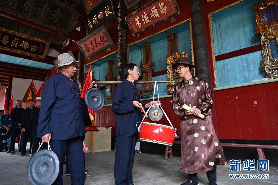 7月4日,浦源村民在村里的鄭氏宗祠集合,準備展示魚祭習俗。魚祭習俗是為死去的鯉魚舉行送葬儀式,是浦源村特有的習俗。新華社記者 姜克紅 攝