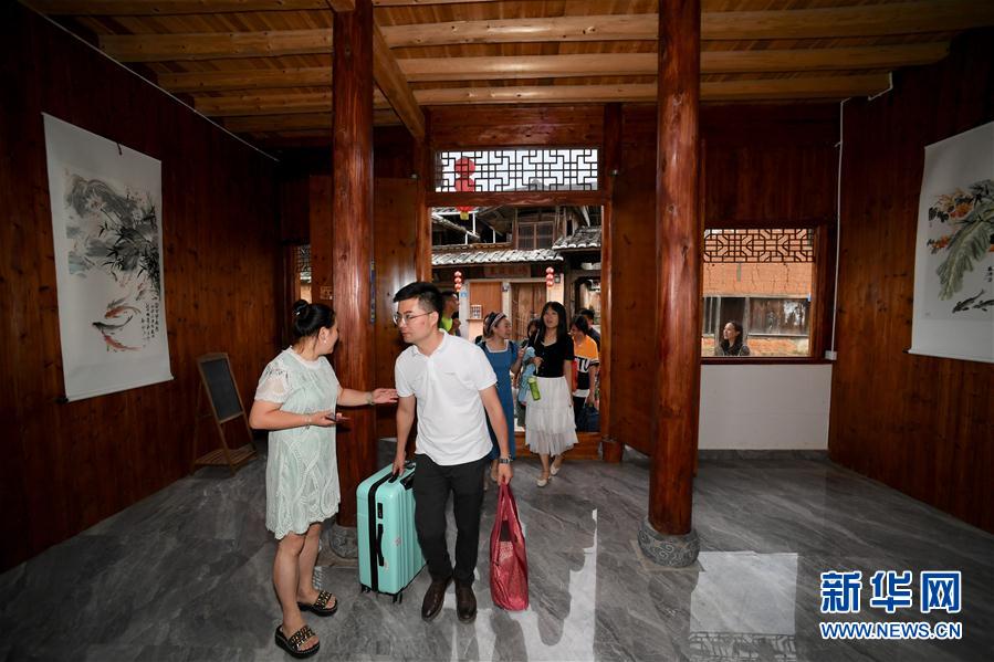 7月3日,來自福州的游客準備入住浦源村鯉魚溪畔的一家民宿。新華社記者 姜克紅 攝