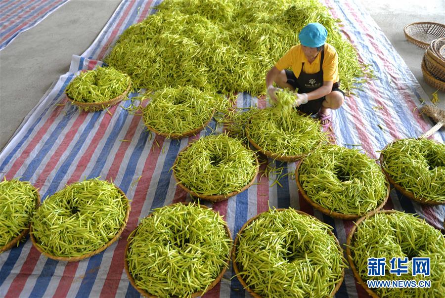 7月12日,祁東縣黃土鋪鎮(zhèn)雷公殿村,村民在分揀黃花菜,準(zhǔn)備通過傳統(tǒng)的加工工藝進(jìn)行蒸煮殺青。新華社記者 趙眾志 攝