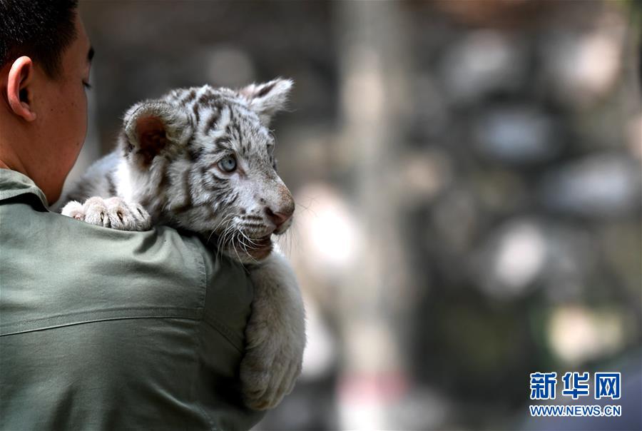7月13日,工作人員將“妞妞”帶回飼養(yǎng)室。河北石家莊市動(dòng)物園的孟加拉白虎寶寶“妞妞”只有3個(gè)月大,由于虎媽媽經(jīng)驗(yàn)不足,“妞妞”一出生便由動(dòng)物園工作人員按科學(xué)方法人工飼養(yǎng)。目前,在飼養(yǎng)員的精心照料下,“妞妞”正在茁壯成長(zhǎng)。新華社記者 王曉 攝