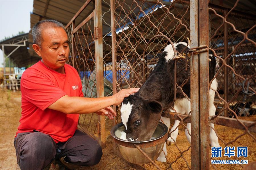 7月11日,河北省清河縣永興奶牛養(yǎng)殖場的工人在給奶牛喂食。近年來,河北省清河縣將扶貧工作與現(xiàn)代農(nóng)業(yè)結(jié)合,以龍頭企業(yè)為引領(lǐng),成立合作社,鼓勵貧困戶利用扶貧資金入股奶牛養(yǎng)殖場,幫助他們常年獲得穩(wěn)定收益。同時,貧困戶農(nóng)閑時還可到產(chǎn)業(yè)園區(qū)打工,既拿股金,又掙薪金,實現(xiàn)“造血式”脫貧。新華社記者 牟宇 攝