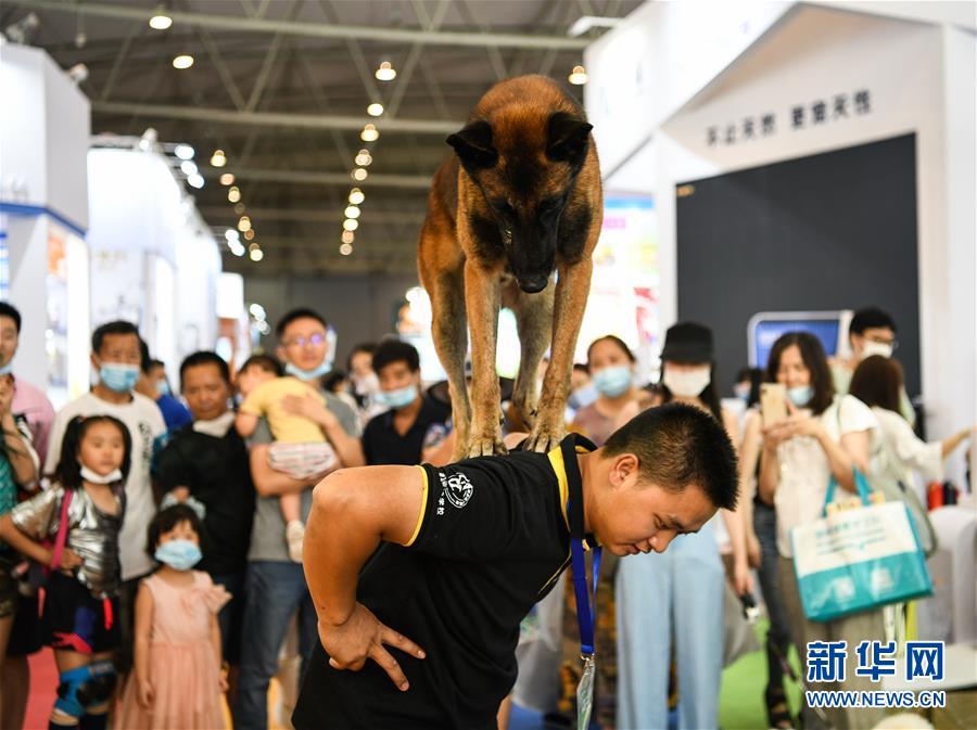 7月19日,在成都世紀城新國際會展中心,一家寵物學(xué)校的馴導(dǎo)師在表演馴犬。當(dāng)日,第九屆成都國際寵博會進入最后一天。此次展會展出面積30000平方米,匯聚國內(nèi)外品牌企業(yè)和產(chǎn)品,覆蓋中西部地區(qū)寵物行業(yè)食品、用品、醫(yī)療和服務(wù)等領(lǐng)域。新華社記者王曦攝