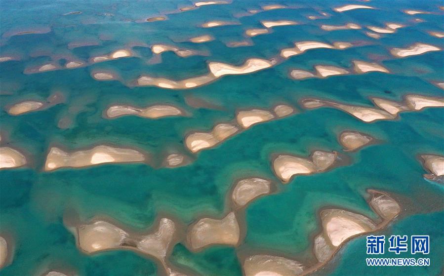 7月10日拍攝的青海湖鳥島一角(無人機照片)。新華社記者張宏祥攝