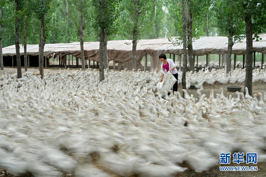 7月15日,河北省灤州市小馬莊鎮(zhèn)佘莊村村民在給鵝群投喂飼料。近年來,河北省灤州市小馬莊鎮(zhèn)充分利用林地資源,大力發(fā)展“林下經(jīng)濟(jì)”,引導(dǎo)農(nóng)民發(fā)展畜禽、食用菌等產(chǎn)業(yè),實(shí)現(xiàn)農(nóng)林資源的優(yōu)勢(shì)互補(bǔ)。目前,小馬莊鎮(zhèn)已發(fā)展林下經(jīng)濟(jì)1000余畝,帶動(dòng)500余名村民實(shí)現(xiàn)增收。新華社記者牟宇攝