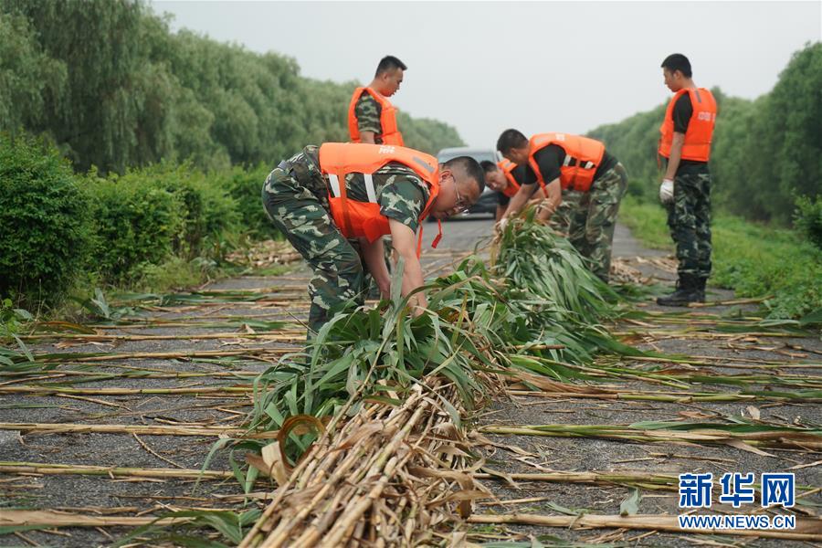 在鎮(zhèn)江市丹徒區(qū)世業(yè)鎮(zhèn)先鋒村西南大堤,中國安能集團第二工程局常州分公司防汛前置備勤隊員準備將捆好的蘆葦放在江堤邊(7月17日攝)。捆蘆葦護邊坡、機器人進涵洞、“養(yǎng)水盆”防滲漏……在江蘇鎮(zhèn)江,當(dāng)?shù)馗刹咳罕姾蛯I(yè)力量,因地制宜就地取材,老辦法搭配新技術(shù),一批險情得以消除在萌芽狀態(tài)。新華社記者季春鵬攝