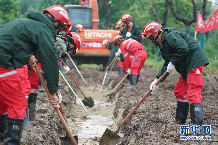 在鎮(zhèn)江市丹徒區(qū)世業(yè)鎮(zhèn)先鋒村西南大堤,中國安能集團第二工程局常州分公司防汛前置備勤隊員在捆蘆葦護邊坡(7月17日攝)。捆蘆葦護邊坡、機器人進涵洞、“養(yǎng)水盆”防滲漏……在江蘇鎮(zhèn)江,當(dāng)?shù)馗刹咳罕姾蛯I(yè)力量,因地制宜就地取材,老辦法搭配新技術(shù),一批險情得以消除在萌芽狀態(tài)。新華社記者季春鵬攝