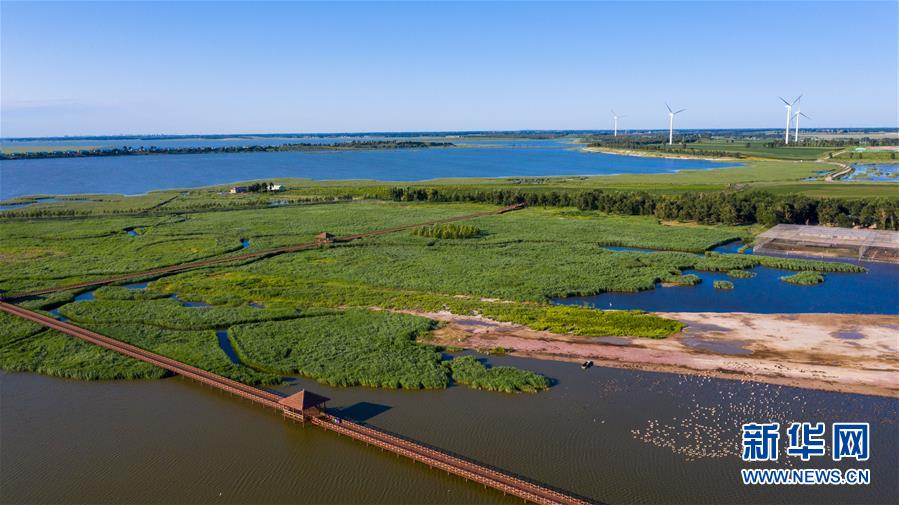 這是查干湖濕地(7月20日攝,無(wú)人機(jī)照片)。新華社記者張楠攝