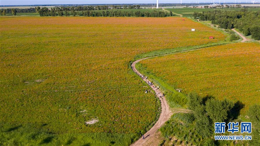這是查干湖花海景區(qū)(7月20日攝,無人機(jī)照片)。新華社記者張楠攝