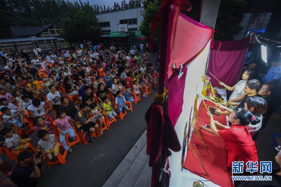 當(dāng)日,浙江省杭州市余杭區(qū)塘棲鎮(zhèn)河西埭村“衛(wèi)家班皮影戲”劇團的藝人們來到余杭區(qū)喬司街道和睦橋村進行演出,這是近期杭州市余杭區(qū)夏季鄉(xiāng)村“文化走親”的重要活動之一。今年6月開始,杭州市余杭區(qū)塘棲鎮(zhèn)組織多支文化表演團體以“文化走親”的形式,先后送戲到余杭區(qū)近20個鄉(xiāng)村文化禮堂,豐富夏日鄉(xiāng)村百姓文化生活。在余杭塘棲一帶,歷史上曾活躍著一支以演出皮影戲出名的民間戲班子,號稱“衛(wèi)家班”。2016年,塘棲鎮(zhèn)河西埭村在文化禮堂的建設(shè)過程中,將當(dāng)?shù)貍鹘y(tǒng)的“衛(wèi)家班皮影戲”作為“一村一品”特色項目進行了搶救性保護。2018年12月,“衛(wèi)家班皮影戲”被列入杭州市非物質(zhì)文化遺產(chǎn)代表性項目名錄。新華社記者徐昱攝