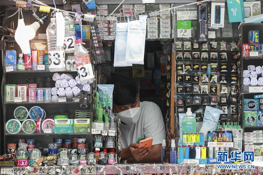7月23日,在美國(guó)紐約時(shí)報(bào)廣場(chǎng),一名小販等待顧客。美國(guó)約翰斯·霍普金斯大學(xué)23日發(fā)布的新冠疫情最新統(tǒng)計(jì)數(shù)據(jù)顯示,美國(guó)累計(jì)確診病例超過400萬例。數(shù)據(jù)顯示,截至美國(guó)東部時(shí)間23日15時(shí)34分(北京時(shí)間24日3時(shí)34分),美國(guó)累計(jì)確診病例4007859例,累計(jì)死亡病例143846例。新華社記者王迎攝
