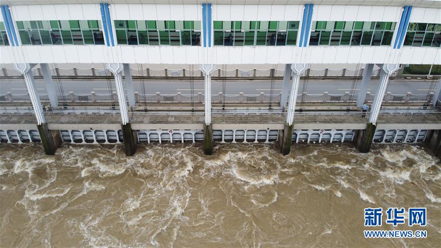 這是7月23日在安徽省阜南縣拍攝的正在關(guān)閘的淮河王家壩閘(無人機(jī)照片)。當(dāng)日13時(shí),淮河干流王家壩閘關(guān)閘,停止向蒙洼蓄洪區(qū)泄洪。新華社記者張端攝