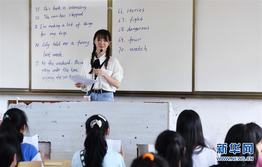 在融水苗族自治縣民族中學(xué)1818班舉辦的送別班會(huì)上,支教老師高潔給同學(xué)們上最后一節(jié)英語(yǔ)課(7月23日攝)。新華社記者黃孝邦攝