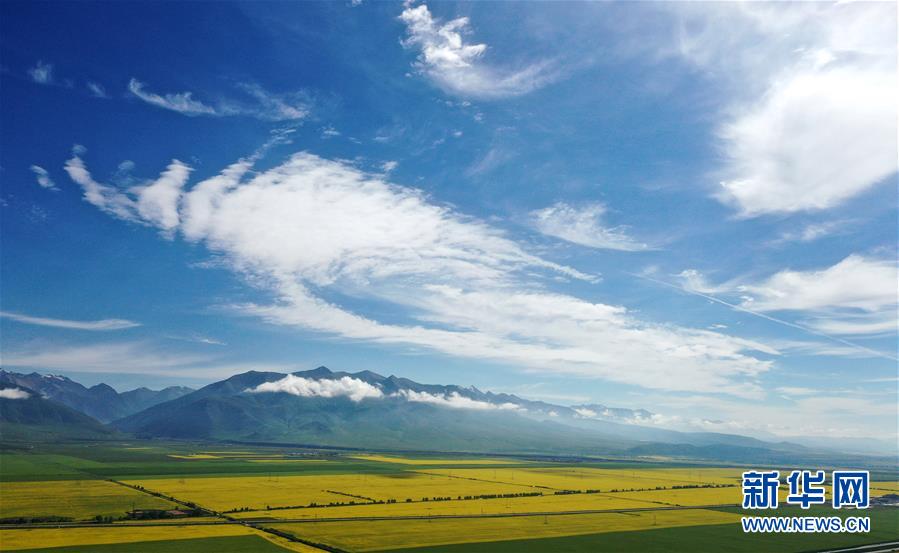 這是7月22日拍攝的門源回族自治縣的油菜花田(無人機照片)。新華社記者 張宏祥 攝