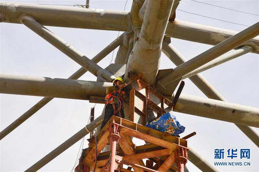7月27日,工人在拉薩貢嘎國際機(jī)場(chǎng)T3航站樓的工地上作業(yè)。新華社記者 田金文 攝