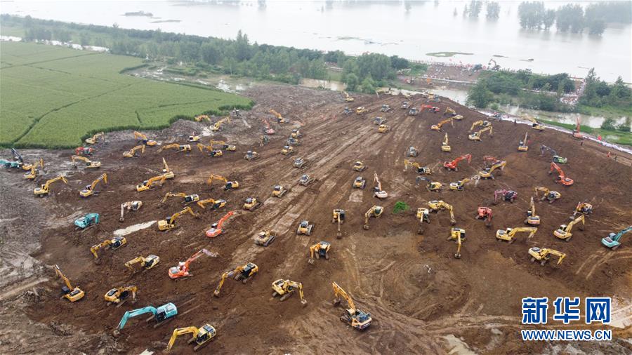 7月26日上午,位于安徽省潁上縣的姜唐湖蓄洪區(qū)戴家湖一處涵閘閘門破損,在大堤背后形成直徑約10米的漩渦,危及附近群眾的生命安全。險情發(fā)生后,當(dāng)?shù)卣{(diào)配大量機(jī)械設(shè)備現(xiàn)場作業(yè),在大堤背水側(cè)修筑一道長600米的臨時圩堤,控制險情。