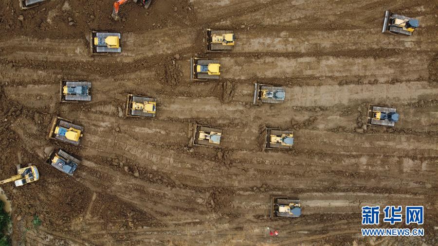 7月28日,在姜唐湖蓄洪區(qū)戴家湖一處涵閘險(xiǎn)情處置現(xiàn)場(chǎng),人們操作機(jī)械設(shè)備在搶筑臨時(shí)圩堤(無(wú)人機(jī)照片)。新華社記者黃博涵攝