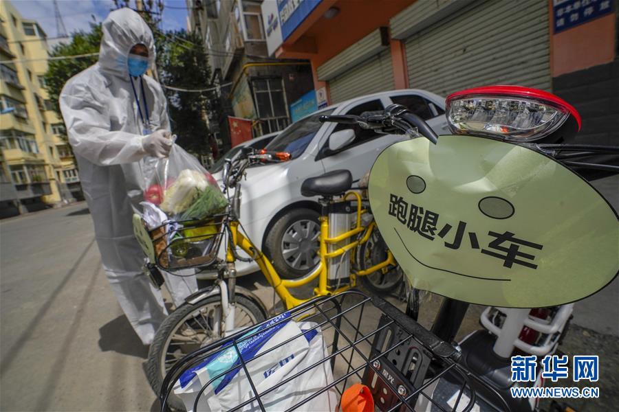 8月3日,在烏魯木齊天山區(qū)西河壩前街社區(qū),社區(qū)工作人員準(zhǔn)備騎上”跑腿小車“為居民送去生活物品。新疆烏魯木齊市天山區(qū)西河壩前街社區(qū)主次干道較多,院落分布分散。新冠肺炎疫情防控期間,社區(qū)整合現(xiàn)有資源,將暫時閑置的自行車、電動車集中起來,貼上“跑腿小車”標(biāo)識,成立便民服務(wù)隊,社區(qū)工作人員通過“跑腿小車”可將居民網(wǎng)絡(luò)定制的“菜袋子”“藥盒子”快速送達,給居民帶來方便。新華社記者趙戈攝