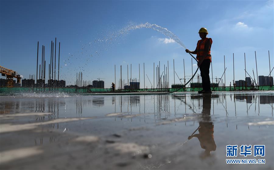 8月3日,工人在長(zhǎng)江文創(chuàng)產(chǎn)業(yè)園項(xiàng)目工地工作平面澆水降溫。進(jìn)入8月,武漢迎來持續(xù)高溫天氣。在湖北廣電傳媒基地工程的工地上,中建三局總承包公司1500多名工人持續(xù)奮戰(zhàn),力保工程進(jìn)度。該工程是我國(guó)中部地區(qū)首個(gè)國(guó)家級(jí)廣播影視媒體基地,由湖北廣電傳媒大廈項(xiàng)目、長(zhǎng)江文創(chuàng)產(chǎn)業(yè)園項(xiàng)目、廣電生活配套項(xiàng)目三大板塊組成,總建設(shè)規(guī)模130萬平方米。自今年3月25日獲批正式復(fù)工以來,承建方克服困難,把因疫情影響耽誤的工期趕了回來,預(yù)計(jì)將按原計(jì)劃完成建設(shè)任務(wù)。新華社記者程敏攝