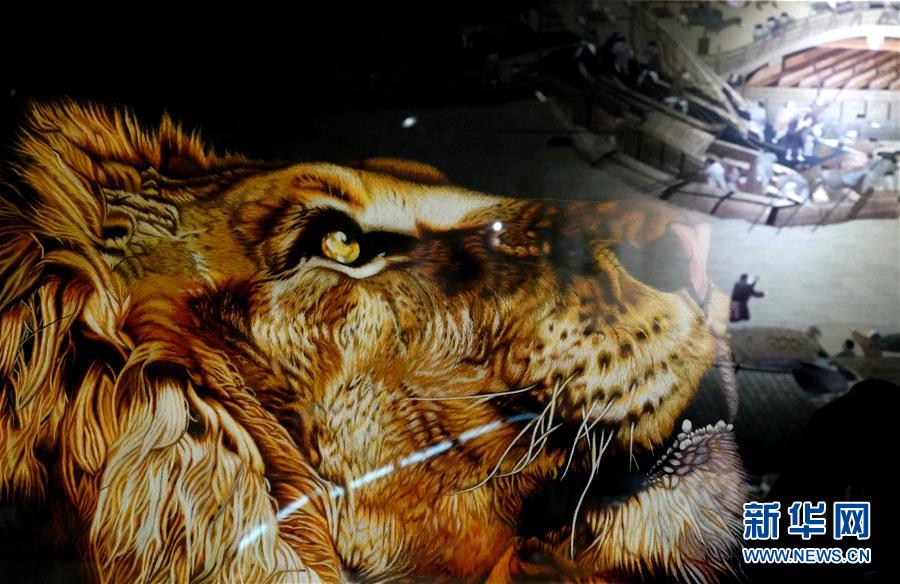 這是開封市素花宋繡工藝有限公司展示館的一幅繡品局部(7月30日攝)。新華社記者李嘉南攝
