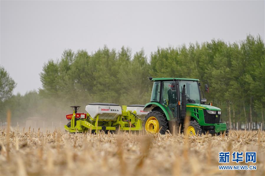 5月7日,在吉林省梨樹縣,農(nóng)民駕駛免耕播種機(jī)播種玉米。新華社記者張楠攝