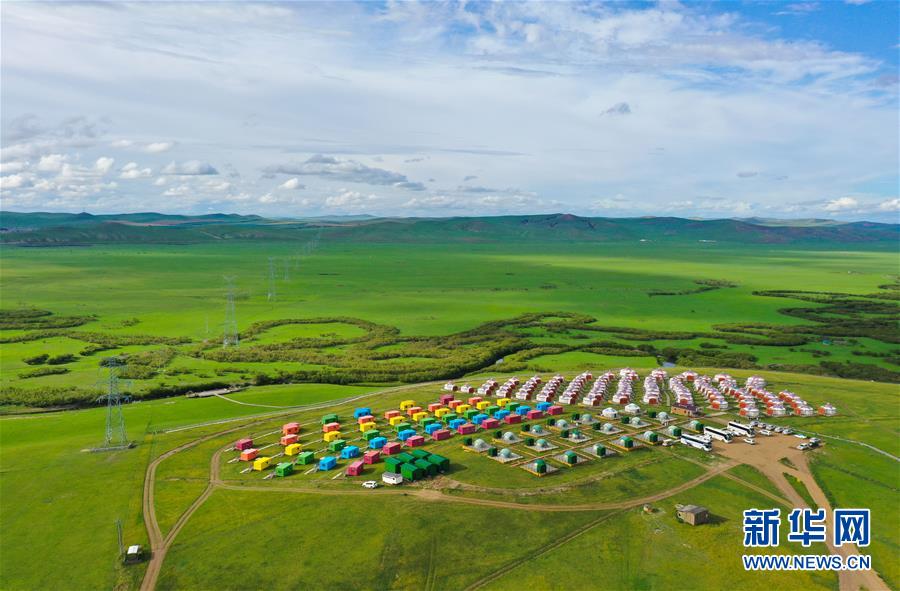 這是呼倫貝爾陳巴爾虎旗天下草原游牧部落一景(8月3日攝,無(wú)人機(jī)照片)。今年暑期,內(nèi)蒙古呼倫貝爾通過(guò)暫行周末2.5天彈性休假工作制度,發(fā)放旅游、餐飲消費(fèi)券,景區(qū)推出優(yōu)惠促銷活動(dòng)等措施,提振當(dāng)?shù)芈糜问袌?chǎng)。新華社記者徐欽攝