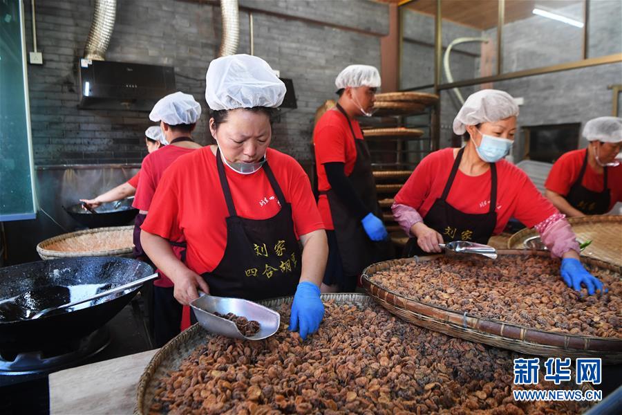 8月5日,工作人員在制作豐盛古鎮(zhèn)特色美食——四合胡豆。近年來,重慶市巴南區(qū)引入社會資本,按照“修舊如舊、適度開發(fā)”的原則對豐盛古鎮(zhèn)進行保護性修繕和景區(qū)化打造,讓古鎮(zhèn)在保留原有歷史人文風(fēng)貌的同時,煥發(fā)新活力。新華社記者王全超攝