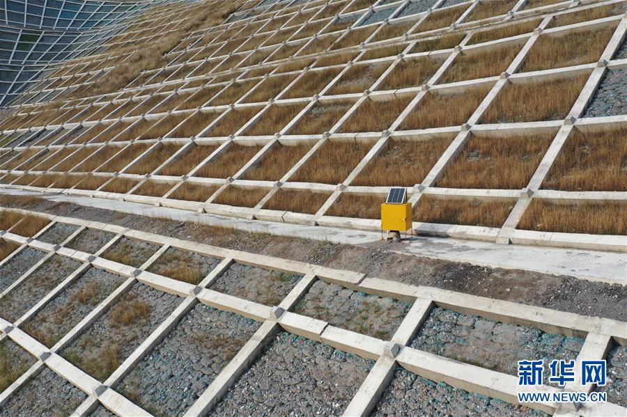 這是7月15日在舟曲縣南峪鄉(xiāng)江頂崖山體滑坡治理點(diǎn)拍攝的一處技術(shù)監(jiān)測(cè)設(shè)備(無(wú)人機(jī)照片)。新華社記者杜哲宇攝