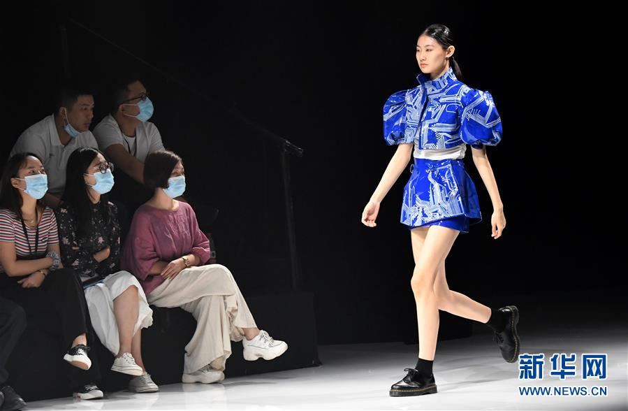 8月6日,模特在時裝秀上展示時裝。當(dāng)日,2020中國(河南)國際大學(xué)生時裝周舉行河南大學(xué)生優(yōu)秀服裝設(shè)計專場展示。8月5日至7日,2020中國(河南)國際大學(xué)生時裝周在河南省新密市豫發(fā)密蘭小鎮(zhèn)舉行。新華社記者朱祥攝