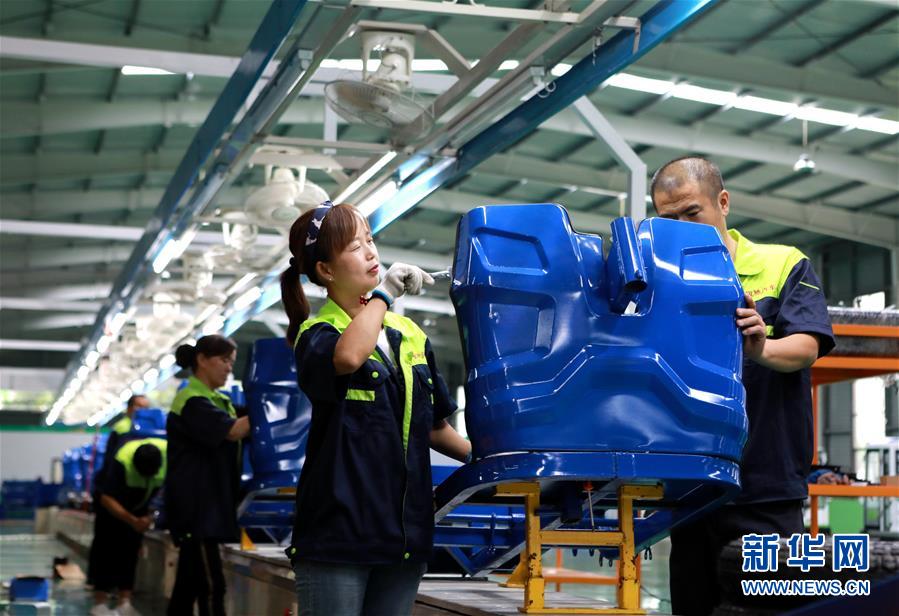 8月6日,工人在廣平縣一家新能源汽車企業(yè)的生產(chǎn)車間里工作。復(fù)工復(fù)產(chǎn)以來,河北省廣平縣的新能源汽車企業(yè)加緊趕制訂單。同時,當(dāng)?shù)卣峁└黜椈萜笳撸哟髱头鲋С至Χ?,及時解決企業(yè)資金、用工等困難,助力企業(yè)發(fā)展。新華社記者王曉攝