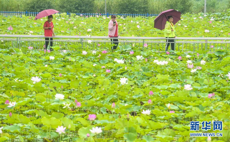 8月6日,游客在河北省永清縣里瀾城鎮(zhèn)金華湖觀賞荷花。夏日時(shí)節(jié),河北省永清縣里瀾城鎮(zhèn)金華湖荷塘的荷花爭(zhēng)相開放,吸引市民和游客前來游玩觀賞。新華社記者李曉果攝