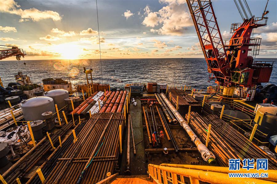 鉆井隊分兩班24小時不間斷運轉(zhuǎn)。在一個班次中,9名鉆井工人協(xié)同操控鉆井設(shè)備,鉆探著海洋油氣資源。契入海底的“探針”??蛇_五、六千米。
