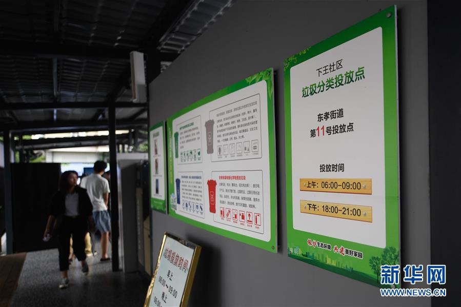 在金華市金東區(qū)東孝街道一社區(qū)拍攝的垃圾分類投放點(7月16日攝)。近年來,浙江省通過創(chuàng)新宣傳教育,多措并舉促進(jìn)垃圾分類投放、收運及處置的良性循環(huán),引領(lǐng)垃圾分類成為城鄉(xiāng)居民的生活新風(fēng)尚。新華社記者黃宗治攝。