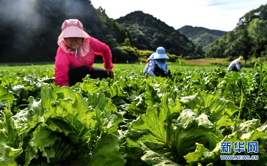 陜西寶雞市太白縣咀頭鎮(zhèn)塘口村的村民在菜地里勞作(7月4日攝)。近年來(lái),地處秦嶺腹地的陜西太白縣利用海拔高、晝夜溫差大等條件發(fā)展高山反季節(jié)無(wú)公害蔬菜種植。目前全縣85%的群眾從事蔬菜生產(chǎn),種植的反季節(jié)高山蔬菜涵蓋28大類(lèi)390余種,暢銷(xiāo)全國(guó)。新華社記者劉瀟攝。