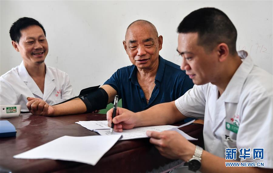 陜西安康市嵐皋縣佐龍鎮(zhèn)中心衛(wèi)生院的醫(yī)生在佐龍村對家庭醫(yī)生簽約服務對象進行慢性病隨訪(7月30日攝)。目前,嵐皋縣組建了71個鎮(zhèn)級家庭醫(yī)生服務團隊、15個縣級技術(shù)指導團隊,對貧困群眾開展重點人群免費體檢、慢病隨訪、健康生活指導、健康扶貧政策宣傳等簽約服務項目。新華社記者劉瀟攝。